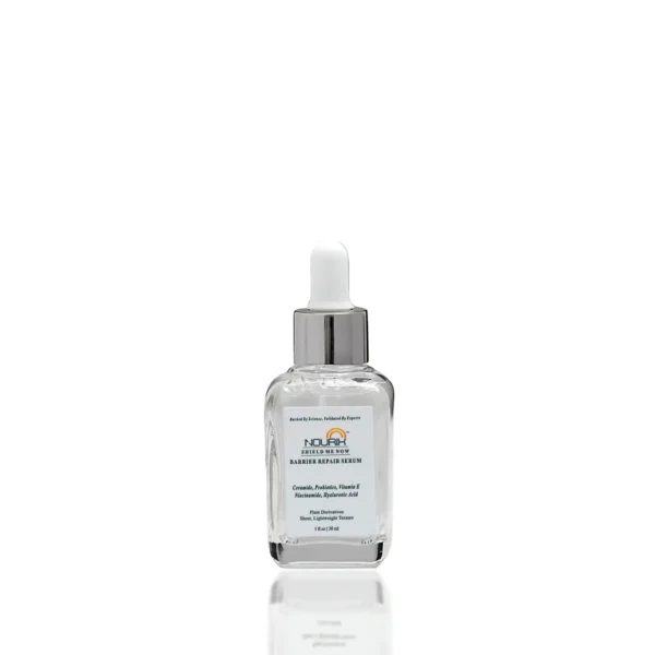 Nourix SHIELD ME NOW Barrier Repair Face Serum, a powerful skincare solution designed to restore and strengthen your skin’s natural barrier. Formulated with a nourishing blend of Ceramides, Hyaluronic Acid, and Probiotics, this serum works to deeply hydrate, soothe inflammation, and reduce sensitivity, making it the perfect product for anyone looking to maintain soft, resilient, and healthy skin.
